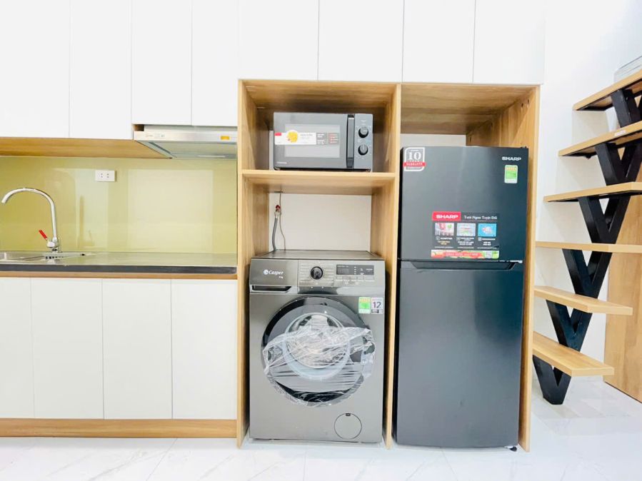 Nội thất hoàn hảo, cửa từ thông minh, điều hoà, ti vi, máy giặt, tủ lạnh, lò vi sóng không thiếu thứ gì.