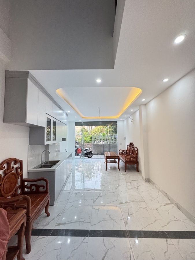 Diện tích: 36m² x 5 tầng, nhà mới tinh, có cửa cuốn hiện đại.
