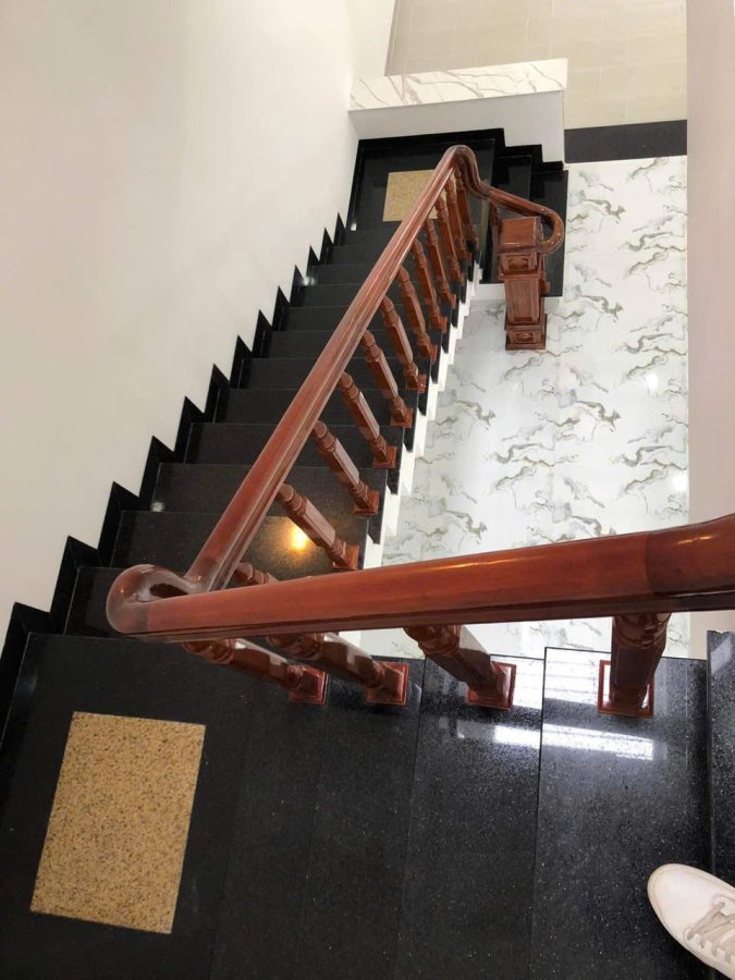 Nhà 3 tầng, diện tích 77,75m2 ngang 5m hướng Nam, 4 phòng ngủ, 1 phòng thờ, 4 WC.