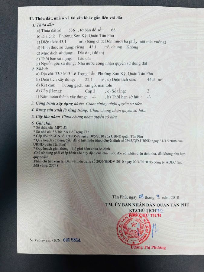 Bán nhà hẻm 33/36/13 Lê Trọng Tấn Tân Phú, Sổ Hồng, Chỉ hơn 3 tỷ