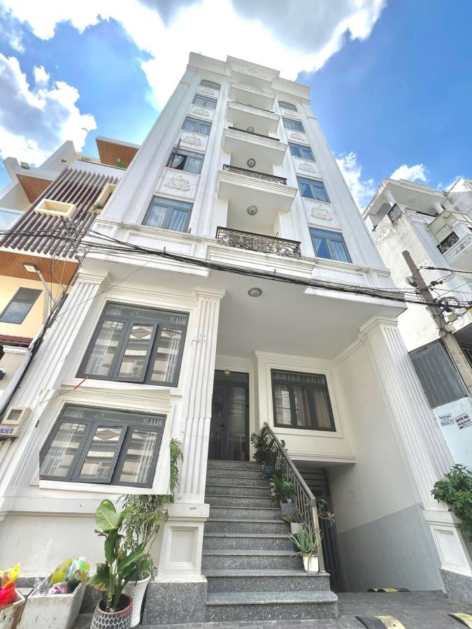 Kết cấu nhà 7 tầng - có Hầm, đúc BTCT kiên cố + Thang máy. đang có 32 CHDV cao cấp cho thuê. đang cho thuê khoán 120 triệu/ tháng.