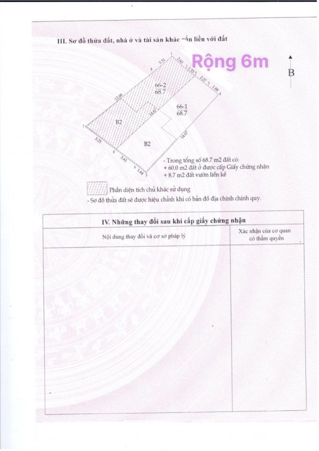 -Diện tích : 68m2 mặt tiền 4,3m nở Hậu 5m.