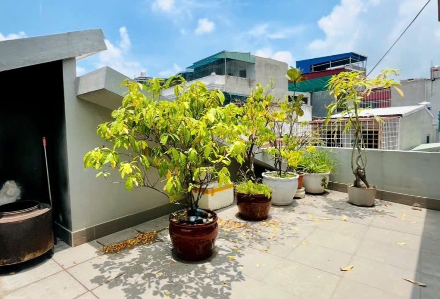 4 phòng ngủ (2 lớn, 2 nhỏ); 3 nhà vệ sinh, Gara ô tô riêng, Phòng khách rộng thoáng, Sân trước để xe, Sân thượng cực kỳ rộng, tiện làm sân vườn hoặc không gian thư giãn, Tặng lại toàn bộ nội thất cao cấp: điều hòa, bình nóng lạnh