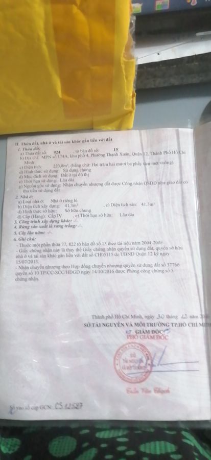BÁN NHÀ MẶT PHỐ THẠNH XUÂN 62, Q.12, HCM - 76M2, 1.6 TỶ -