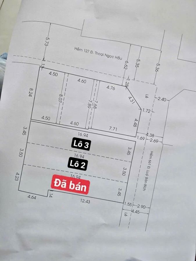 Bán nhà nát Sát MT Lũy Bán Bích DT 3.5x18.5m.Cách MT 25m.