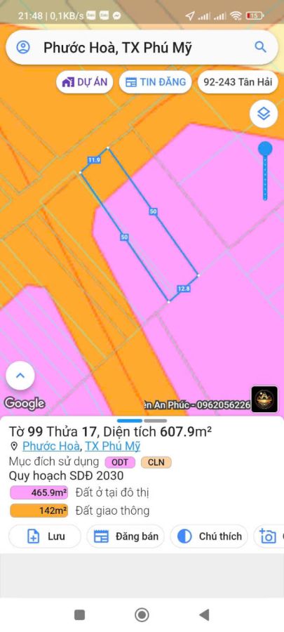 Bán nhà phường phước hòa TP phu my 12*50*50 TC giá 4 tỷ 400 t