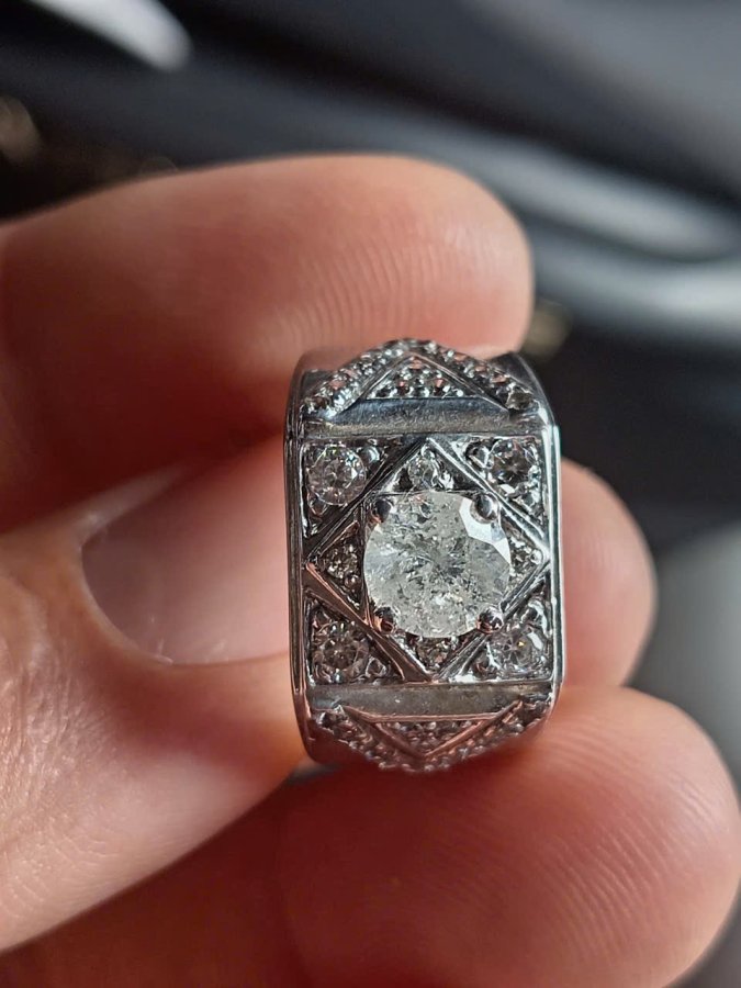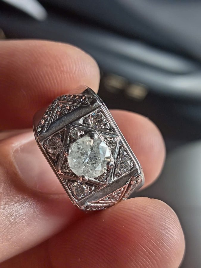 Nhẫn bạc đính viên kim cương chủ 6ly3 tự nhiên size 19 cần bán giá trên
