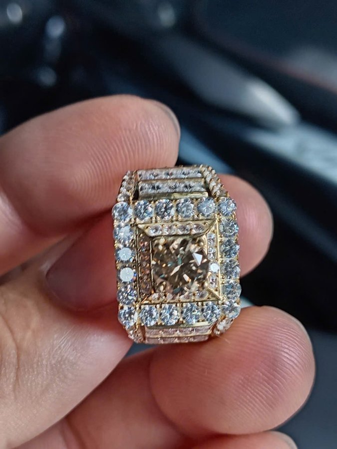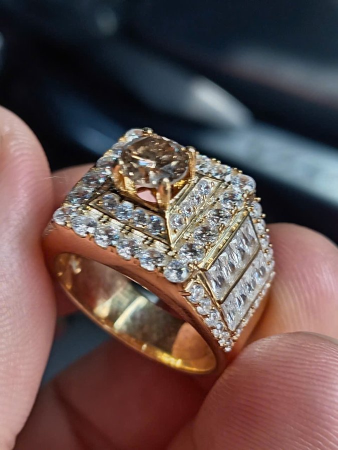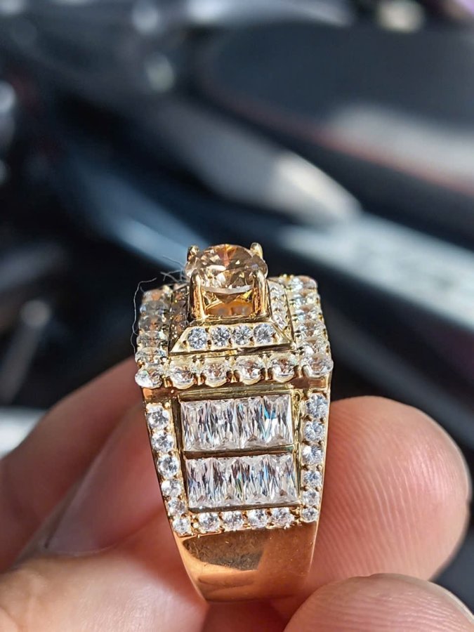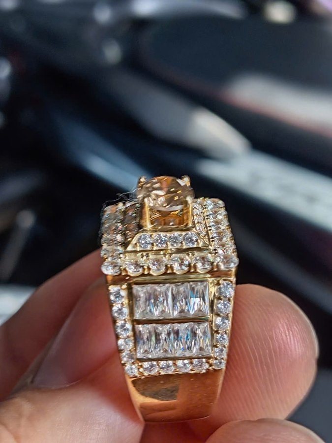 Bán nhẫn bạc nam đính kim cương tự nhiên 6ly5 vàng champanh rất lửa