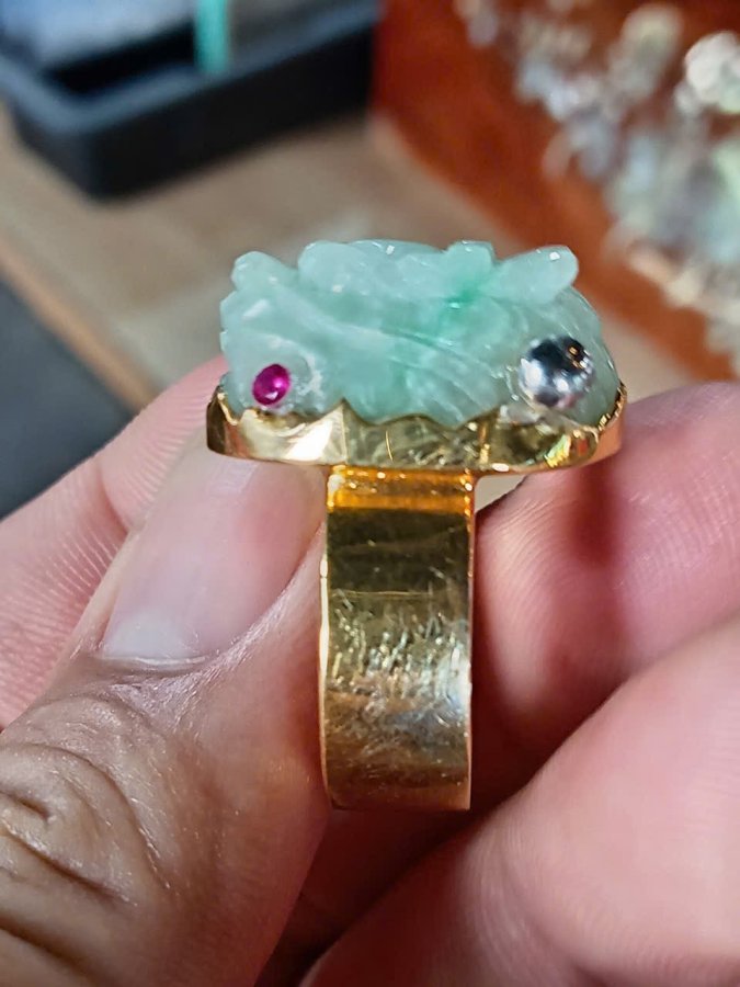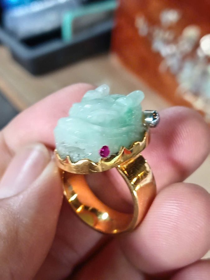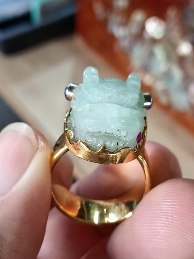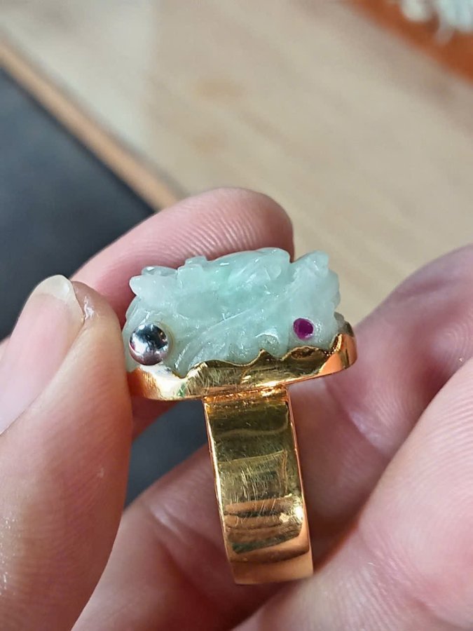 Nhẫn bạc nam hàng thiết kế mặt rồng cẩm thạch tự nhiên size 21mm