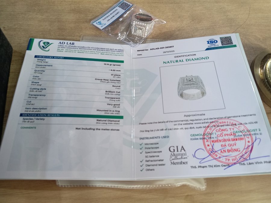 Nhẫn nam kim cương chủ tự nhiên 6ly5 kiểm định vỏ bạc size 21mm giá trên