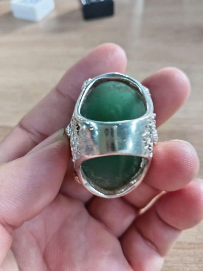 Bán nhẫn nam thiết kế bạc đính đá thạch anh xanh khủng