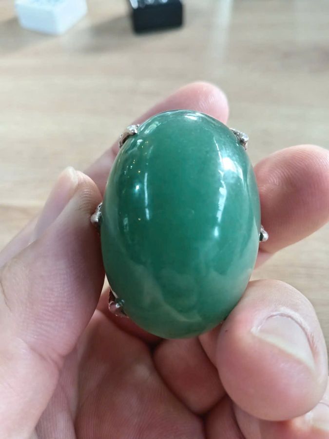 Nhẫn nam khủng thiết kế đá thạch anh xanh tự nhiên size khủng 22mm giá trên