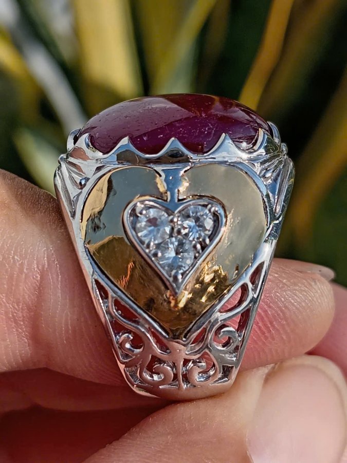 Nhẫn nam hàng thiết kế bạc + vàng 10k full kim cương tự nhiên 2ly6_2ly7 chủ đá ruby đỏ cao cấp size 20_21mm cần bán giá trên