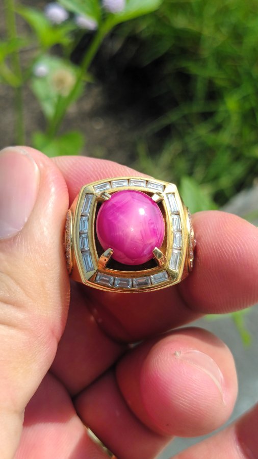 Cần bán nhẫn nam vàng 10k 416 thiết kế full kim cương Moissantie chủ đá ruby sao TL vàng chưa đá 3chi12 size 21mm giá trên