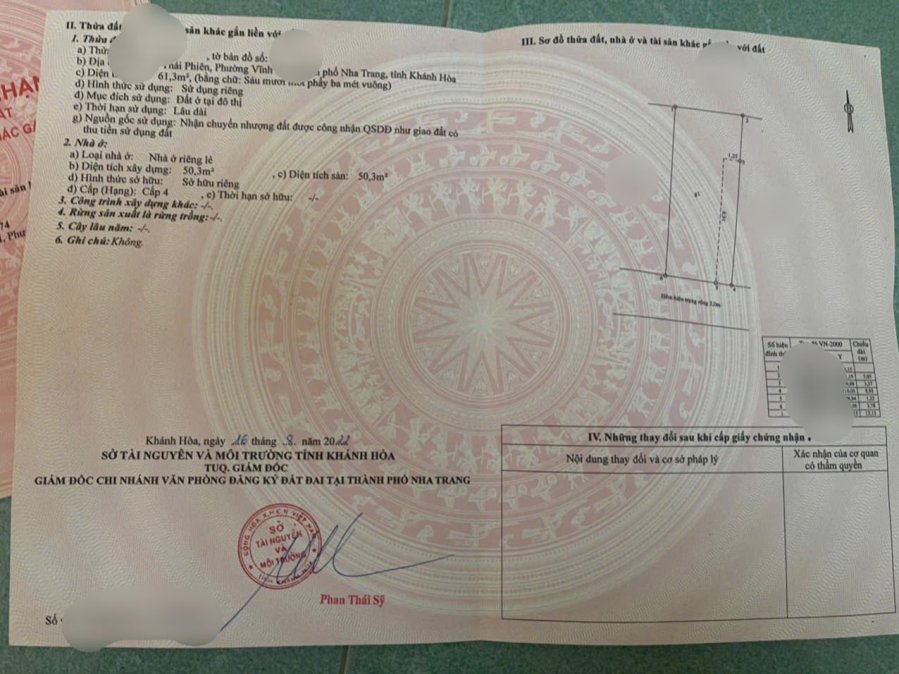 Pháp lí : số hồng (hoàn công)