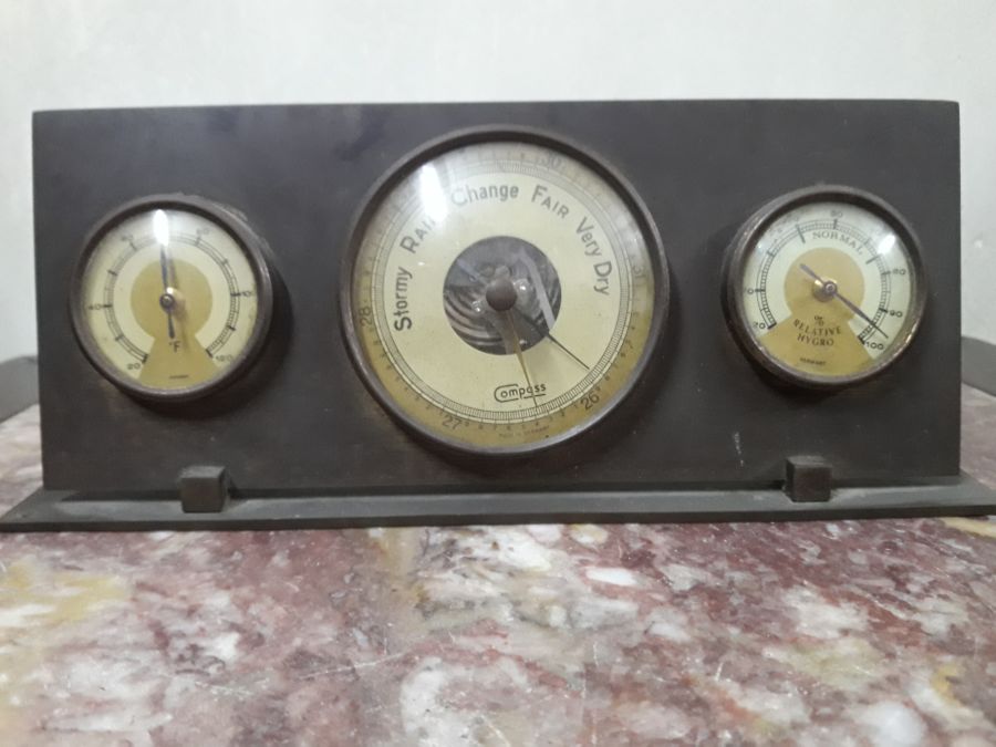 Bán phong vũ biểu đồ xưa cũ hàng Châu âu, dài 21cm, cao 9cm, còn nguyên vẹn, tình trạng như hình , đồ dùng để lâu ngày không biết còn hoạt động được không ,trưng bày decor cũng rất đẹp mắt .Kính phố
