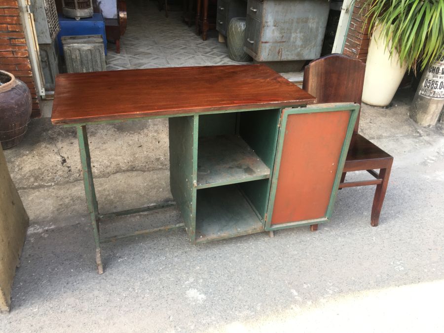 bán tại nhà bàn sắt vn xưa mặt gỗ gõ cao 79 x 55 x 105 cm.