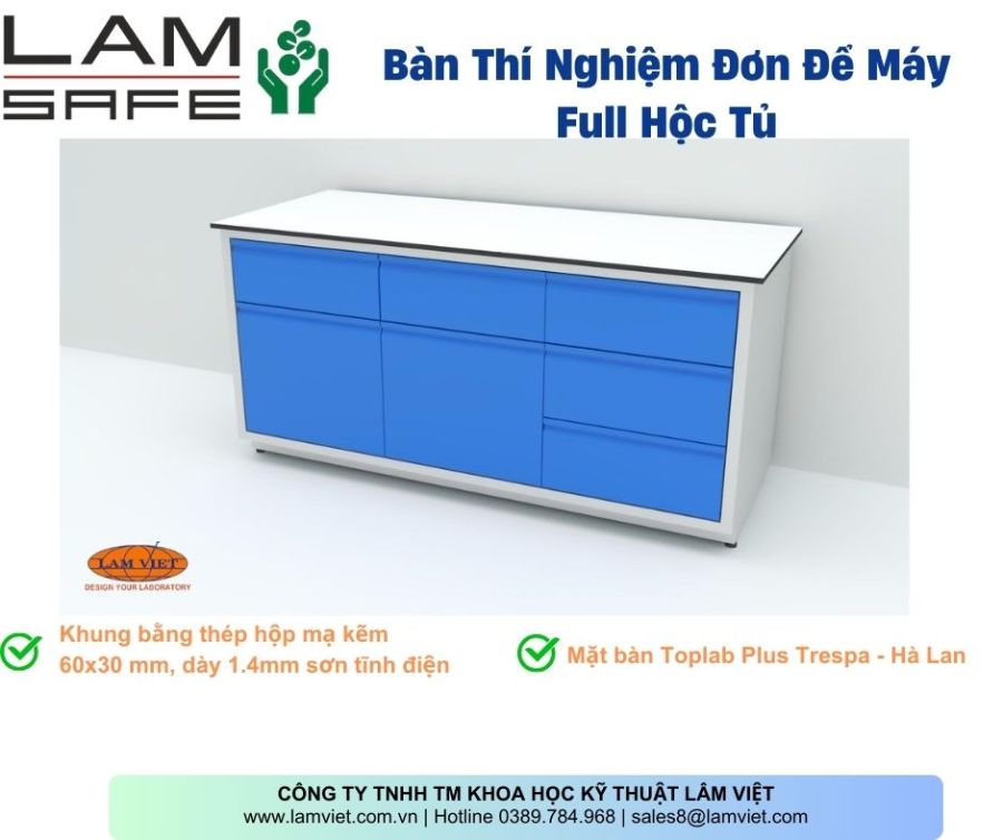 Bàn Thí Nghiệm Đơn Để Máy Có Hộc Tủ - Lamsafe