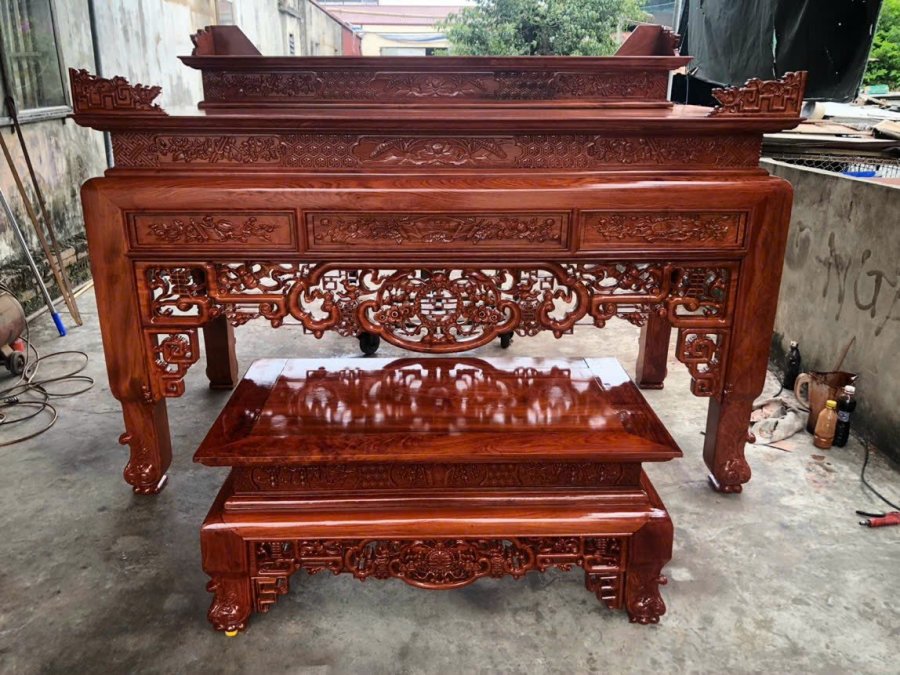 Bàn Thờ gỗ gụ truyện ngũ phúc kim tiền kt 217-107-97