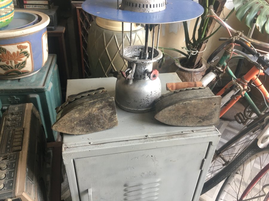 Gl 2 bàn ủi con gà thân đồng , nặng =>2 kg / cái. 1 cái 900 ngàn đồng (con gà bằng nhôm sơn màu đồng). 1 cái 1,05 triệu (con gà bằng đồng)