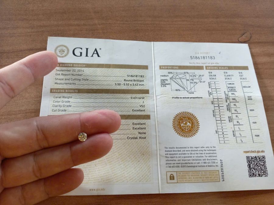 Viên kim cương tự nhiên 5Ly5 J VS2 giấy GIA cực sạch lửa y hình cần bán giá trên