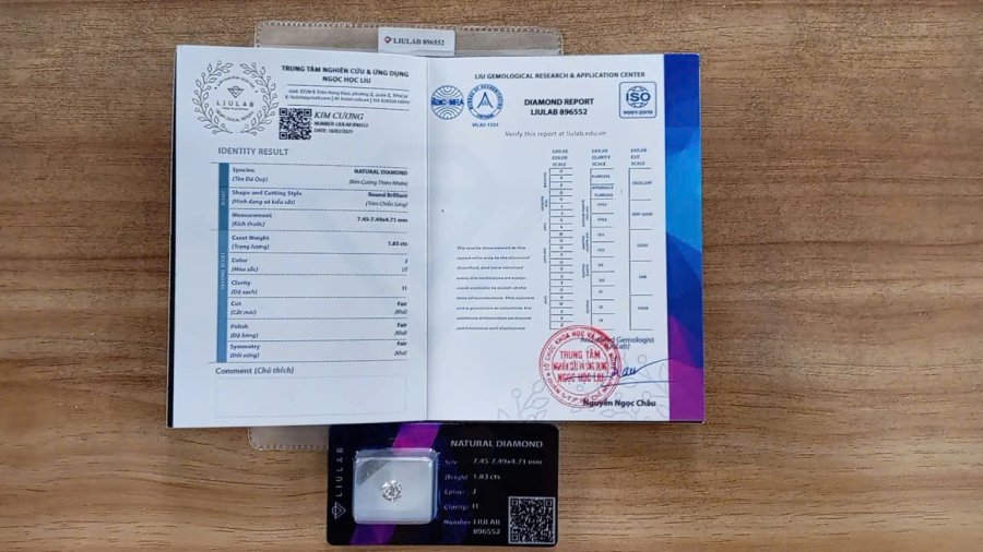 Viên kim cương thiên nhiên trắng rực lửa bung nóc đã kiểm định cần bán giá trên