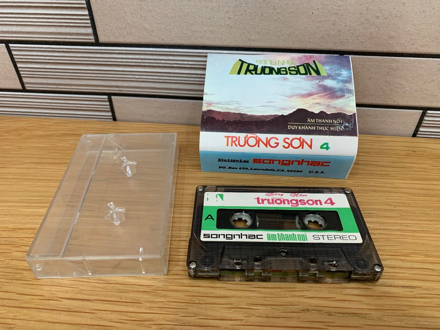 Băng Cassette Gốc Trường Sơn 4 băng còn rất đẹp đã test âm thanh tốt không lỗi giá 1.900.000 vnd Anh em có nhu cầu liên lạc 0934941966 Chánh Sài Gòn Q8 , cảm ơn anh em xem tin .