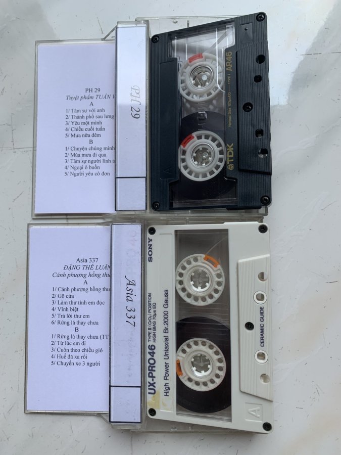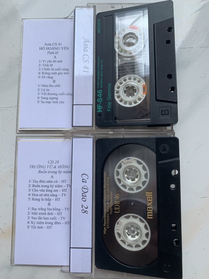Băng Cassette Nhật rell lớn 46p, mới và đẹp. Thu từ CD nhạc sau 75. Âm thanh hay, các bạn quan tâm liên hệ: A. Cao (vui lòng không nhắn tin). Giá bán; 120k/cuốn. Cám ơn các bạn đã đọc tin.
