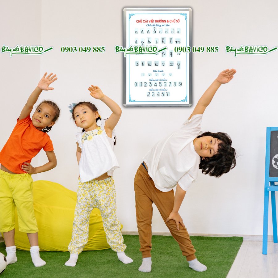 ✅ Khung viền nhôm chuyên dụng: Tạo độ chắc chắn, sang trọng và bền bỉ cho bảng, dễ treo lên tường lớp học hoặc bảng di động.