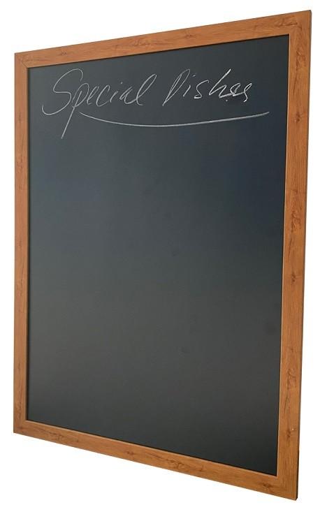 Bảng menu màu đen dùng viết phấn rất rõ nét và lau dễ dàng. Bảng được thiết kế với khung gỗ viền xung quanh, mang lại cảm giác mộc mạc, gần gũi mà vẫn sang trọng. Có thể tùy chọn khung gỗ tự nhiên hoặc sơn đen để phù hợp với phong cách trang trí của cửa hàng.