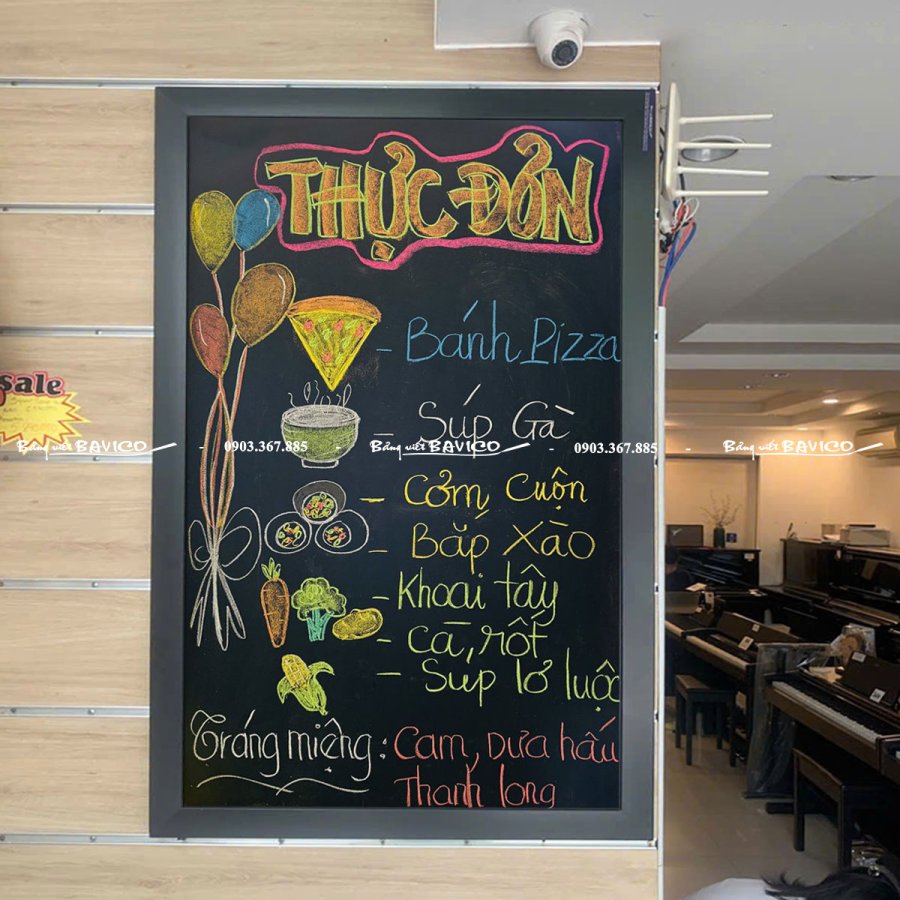 Dễ Dàng Tùy Chỉnh: Với bề mặt đen mờ, bảng menu này rất phù hợp để sử dụng với phấn. Bạn có thể thay đổi thực đơn dễ dàng và nhanh chóng mà không gặp bất kỳ khó khăn nào.