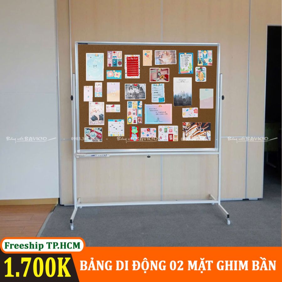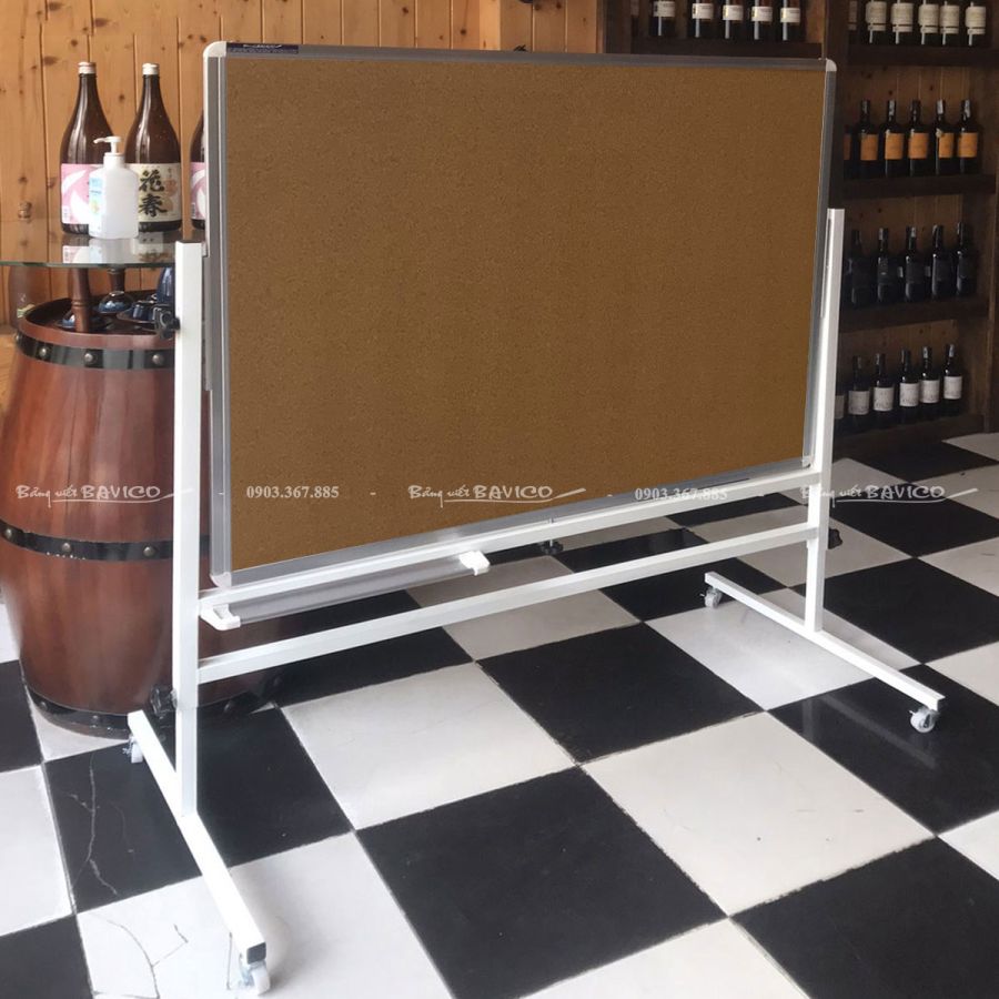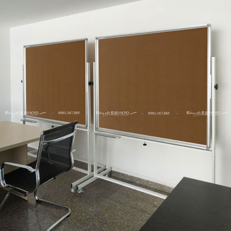 Đây là loại bảng ghim bần 2 mặt được gắn trên hệ chân di động có bánh xe giúp dễ dàng di chuyển. Mỗi mặt bảng là lớp bần ép chất lượng cao, cho phép người dùng ghim tài liệu, hình ảnh, thông báo nhanh chóng bằng đinh ghim hoặc kim bấm. Đây là bảng di động BAVICO được thiết kế chuyên biệt cho nhu cầu sử dụng linh hoạt trong nhiều không gian.