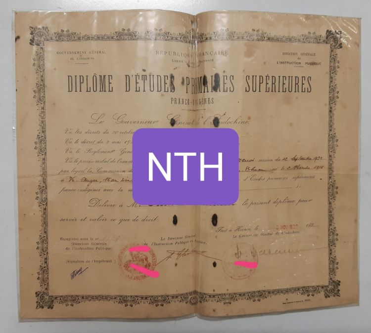 Bằng Diplôme thời Đông dương.
