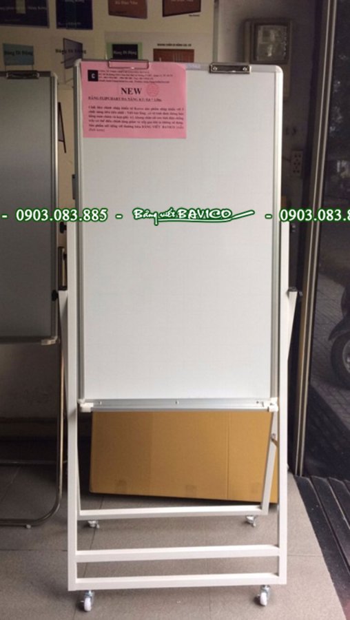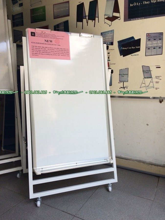 Bảng Flipchart với nguyên liệu mặt bảng nhập trực tiếp từ Hàn Quốc và được sản xuất theo công nghệ Châu Âu. Bảng Flipchart có gắn kẹp giấy, có bánh xe di chuyển, cho phép điều chỉnh độ cao và xếp gọn.