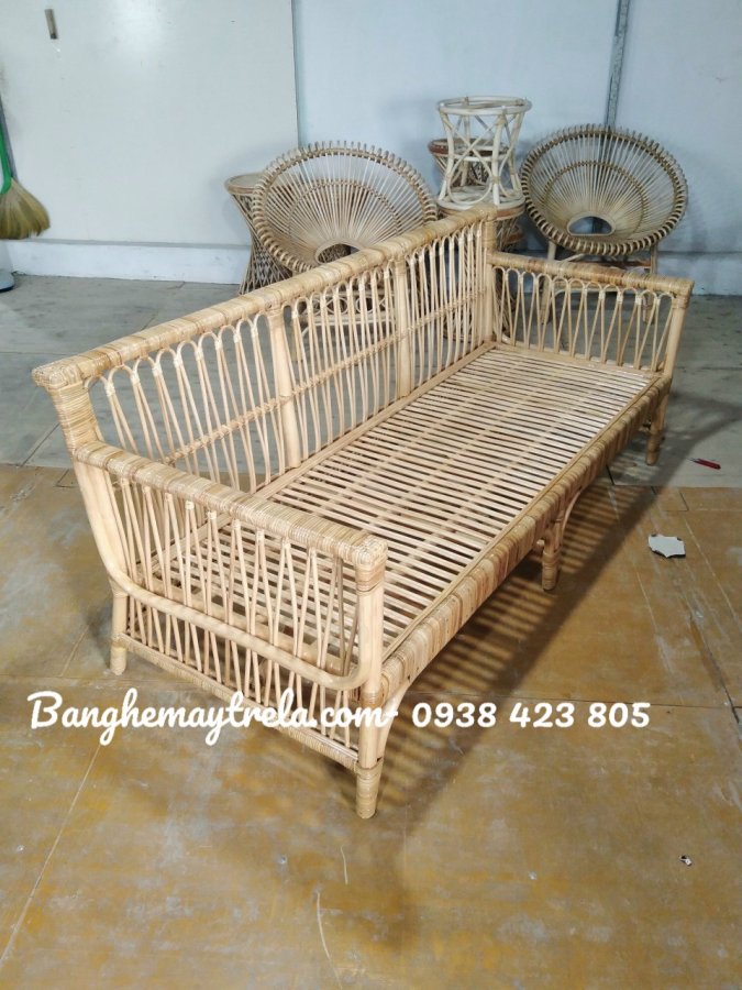 Băng ghế sofa mây phòng khách hiện đại là mẫu nội thất mang phong cách thanh lịch, kết hợp giữa chất liệu mây tự nhiên (hoặc nhựa giả mây) với thiết kế tối giản. Kiểu dáng thường gọn gàng, tinh tế, phù hợp với không gian phòng khách sang trọng lẫn phong cách gần gũi, ấm áp.