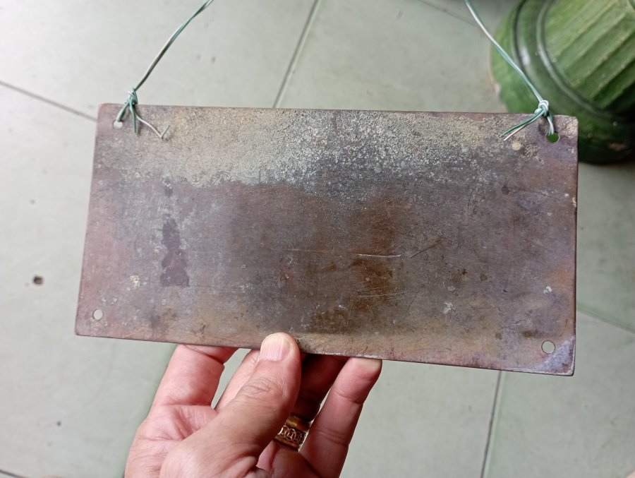 Bảng hiệu công ty xưa bằng đồng đỏ, tình trạng còn rất đẹp. KT: 20cm* 10cm. Mời các anh!