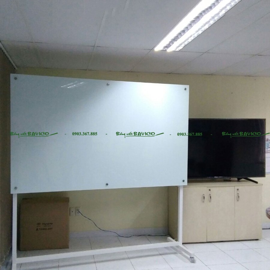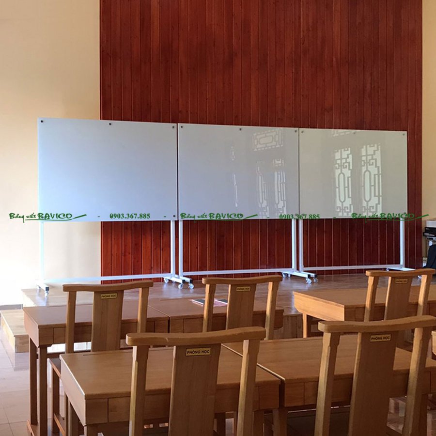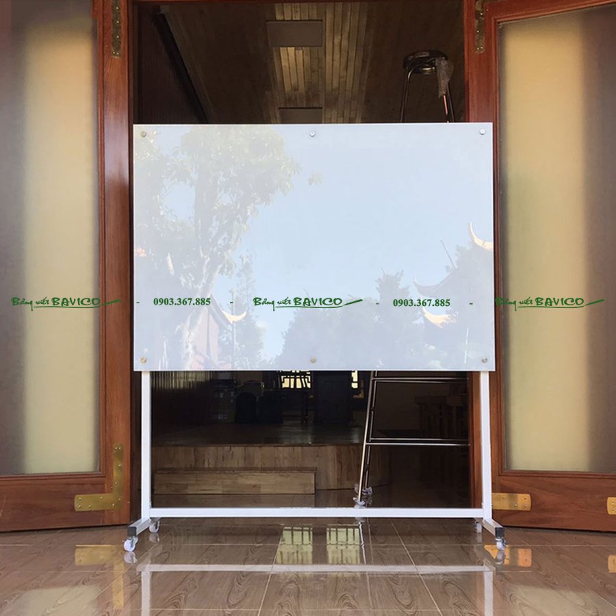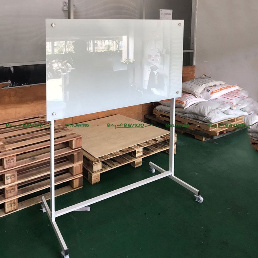 Đây là loại bảng được làm từ kính cường lực cao cấp, có độ dày và độ bền vượt trội, được gắn trên khung chữ T vững chắc có bánh xe di chuyển linh hoạt. Bảng dùng để viết bằng bút lông chuyên dụng cho kính, dễ dàng xóa sạch không để lại vết mờ, giúp tiết kiệm thời gian vệ sinh.