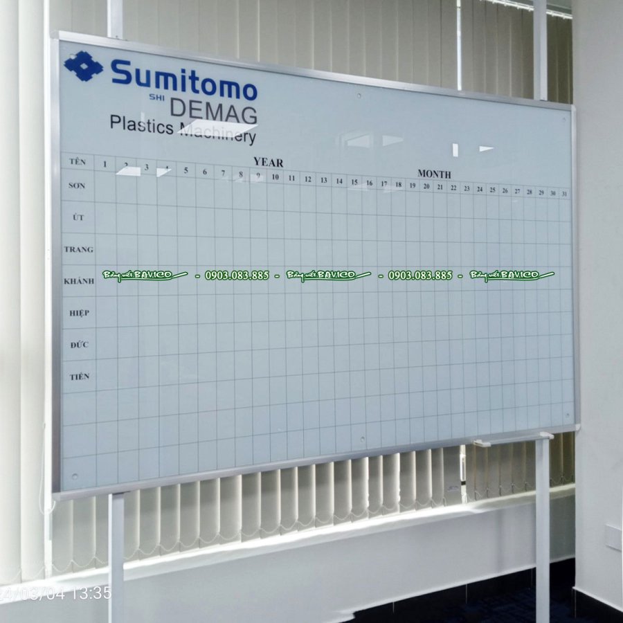 Chất liệu bằng kính cao cấp được cường lực trên 1000 độ C, đảm bảo mặt bảng chịu lực tối ưu và an toàn tuyệt đối. Ngoài ra, mặt bảng có ô ly vuông chìm 5cm giúp viết thẳng hàng hoặc hỗ trợ in các nội dung khác theo yêu cầu như lịch công tác, sơ đồ, bảng chuyên môn