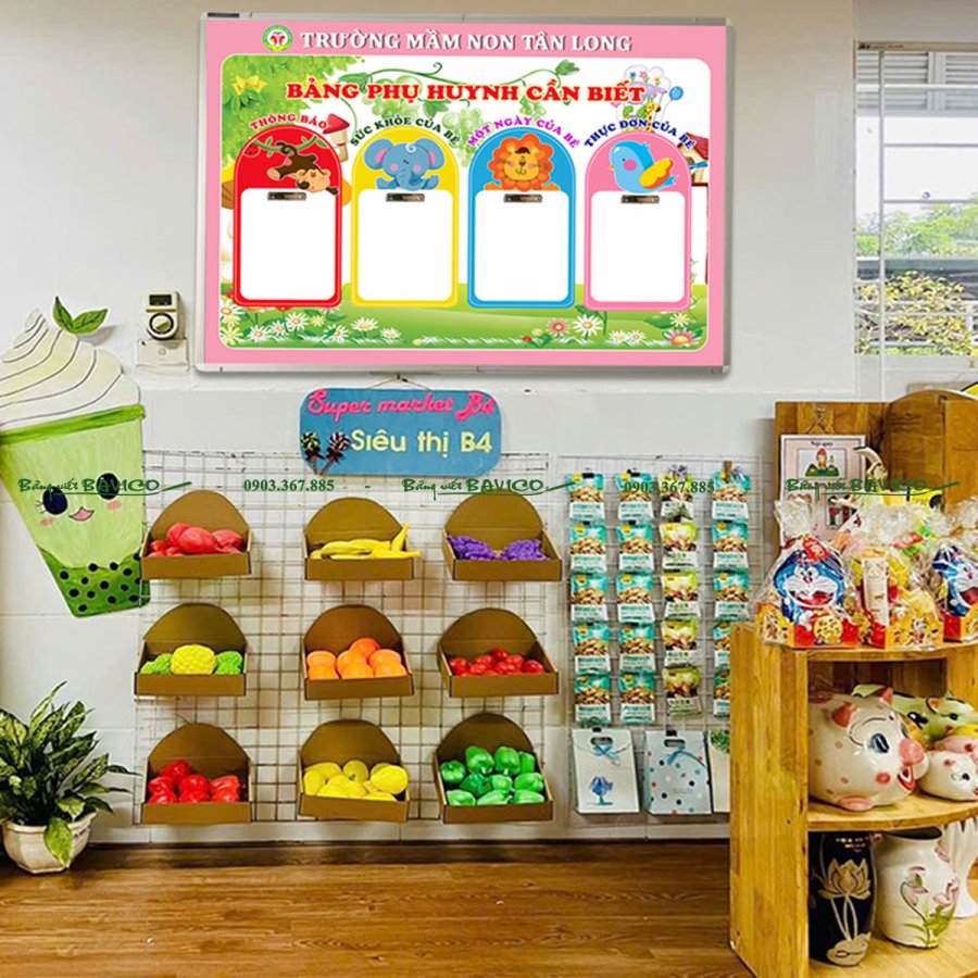 Trong môi trường mầm non, việc kết nối giữa nhà trường và phụ huynh đóng vai trò vô cùng quan trọng. Hiểu được điều đó, BAVICO đã thiết kế và sản xuất BẢNG PHỤ HUYNH CẦN BIẾT – sản phẩm tiện ích giúp các trường mầm non truyền tải thông tin nhanh chóng, sinh động và khoa học đến phụ huynh.