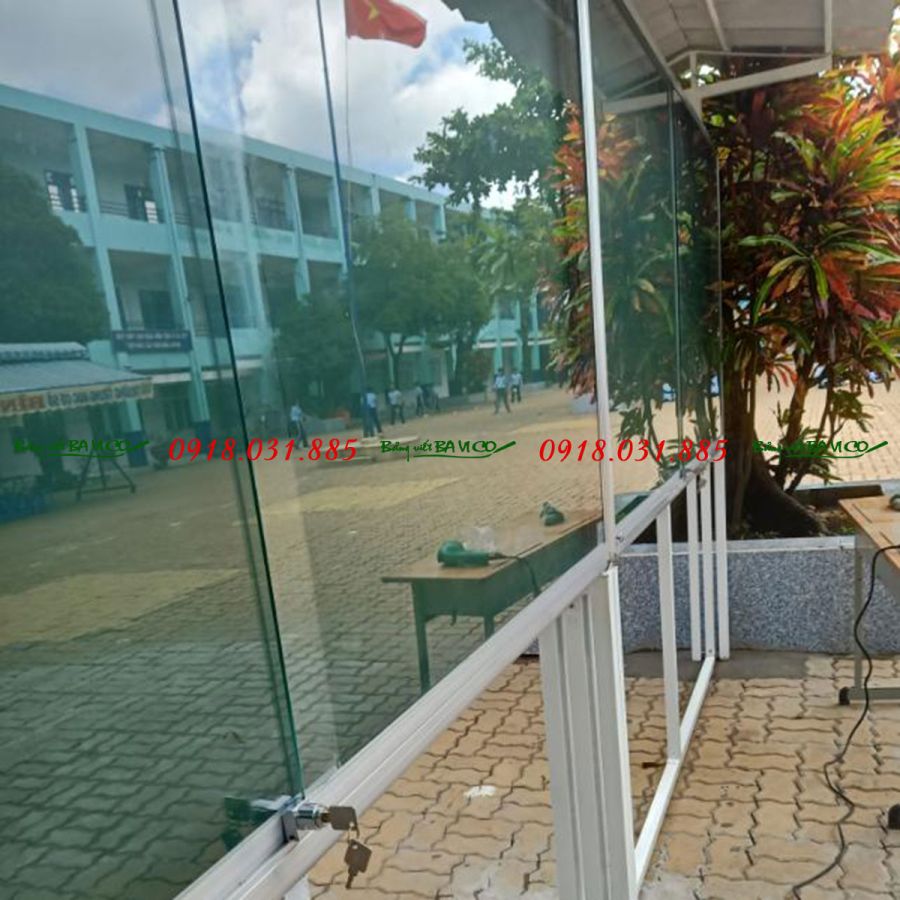 Bảng thông báo cửa kiếng có gắn khóa, có mái che là sản phẩm cao cấp do Công ty sản xuất bảng viết BAVICO trực tiếp thiết kế và sản xuất.