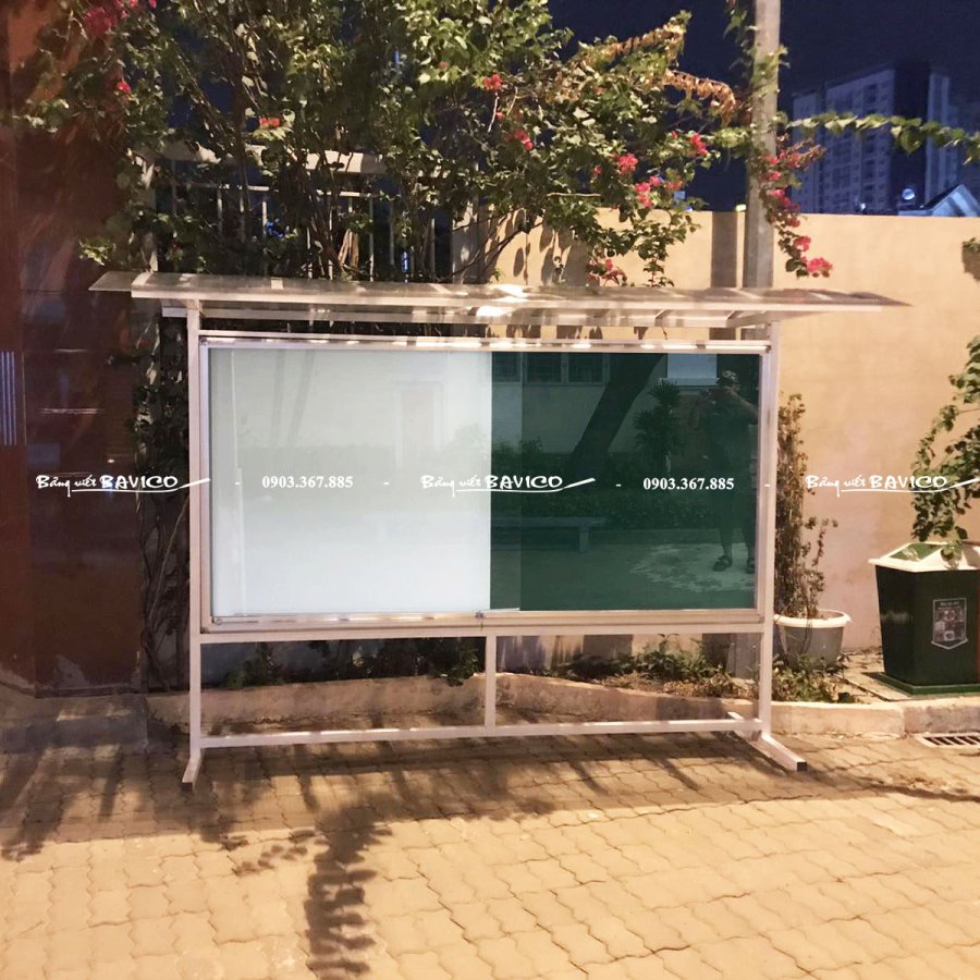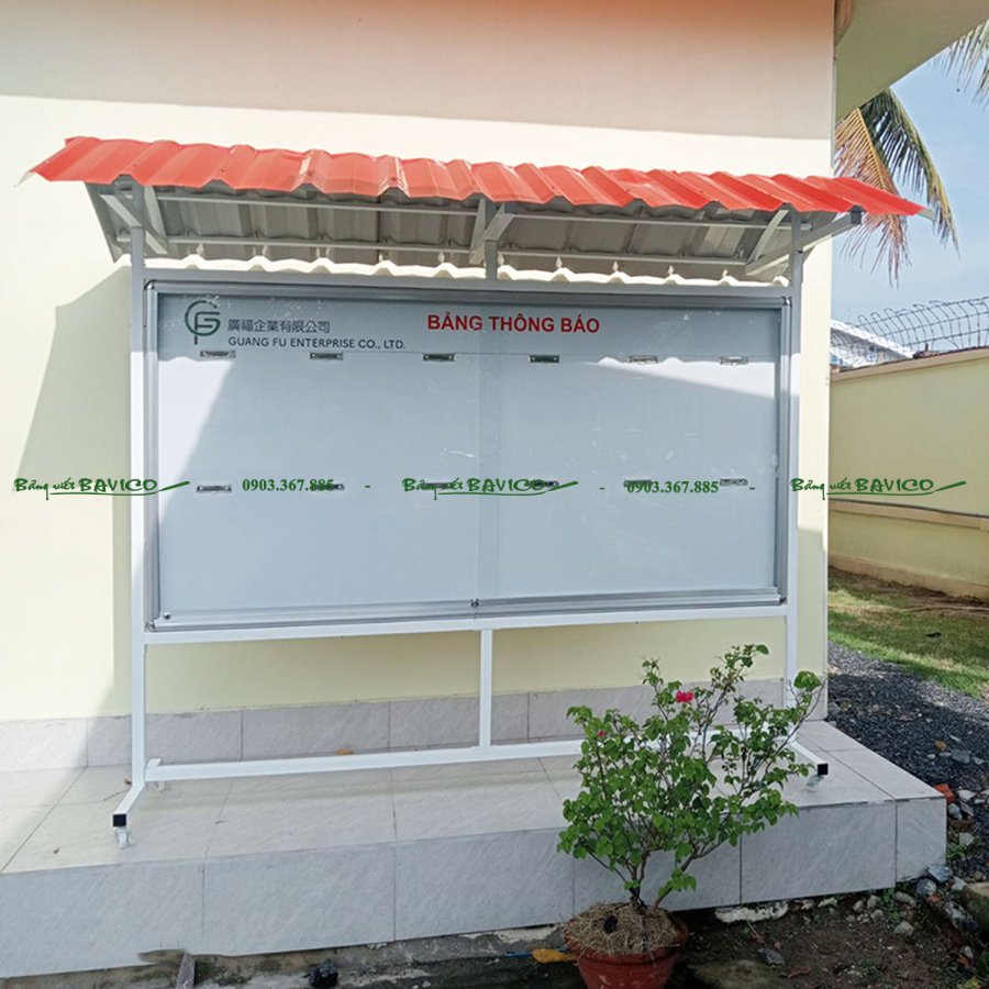 Bảng thông báo di động thường đặt ngoài hành lang để thông báo nội dung thông tin trên mặt bảng và khóa lại khi không sử dụng.