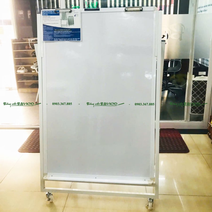 Đây là loại bảng trắng được thiết kế kèm chân đứng có thể xếp gọn, phù hợp cho những không gian linh hoạt. Mặt bảng được sản xuất theo công nghệ Poly Taiwan – nổi tiếng về độ bền, khả năng chống lóa, chống trầy xước và hỗ trợ viết bút lông mượt mà.