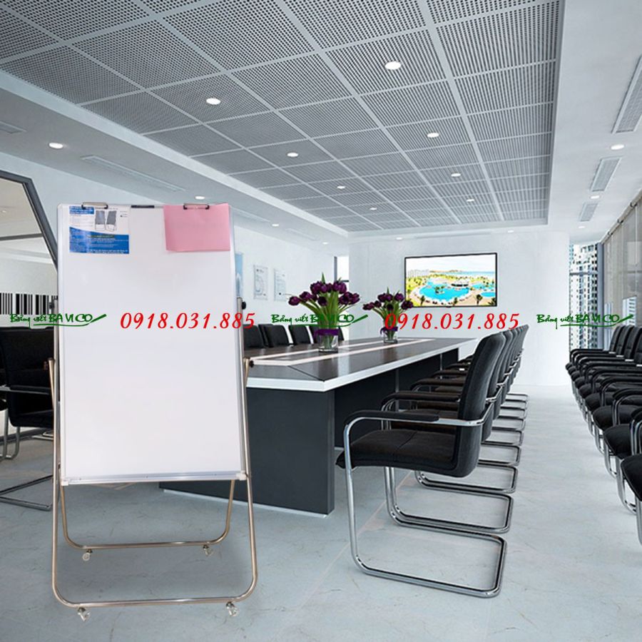 Bảng trắng có chân inox xếp gọn kết hợp kẹp giấy không chỉ là thiết bị hỗ trợ giảng dạy mà còn dùng được cho các buổi họp, thuyết trình tại các công ty.