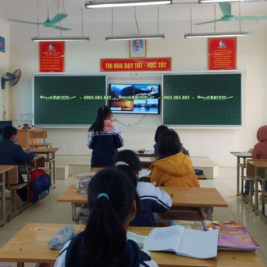 Bảng trượt ngang phấn từ Hàn Quốc được thiết kế để kết hợp với TV từ 55 inch đến 75 inch hoặc màn hình tương tác thông minh, nhằm mục đích tiết kiệm được không gian. Mặt bảng được kẻ ô ly tập 4 ô, ô ly tập 5 ô hoặc ô ly tiểu học. Bảng trượt ngang phấn từ Hàn Quốc mang đến tính sang trọng hiện đại cho phòng học. Hệ thống trượt gồm 2 bảng trượt di chuyển nhẹ nhàng trên 2 đường ray và tương tác tốt với TV bên trong.