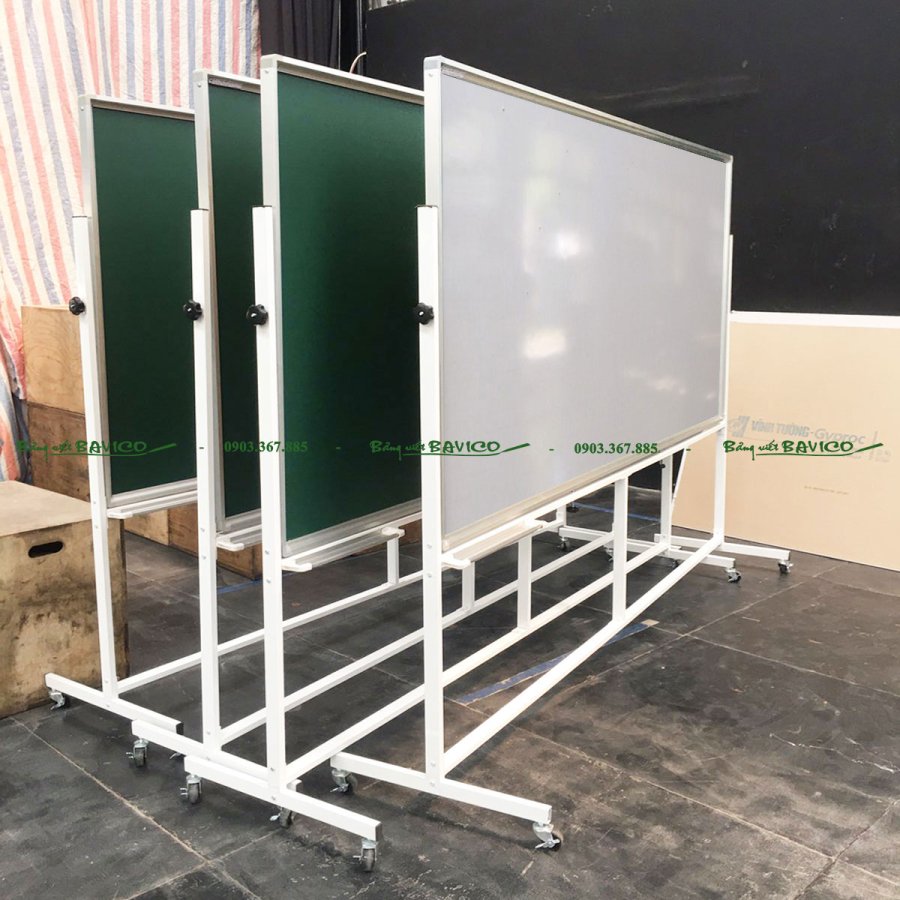 Đây là loại bảng viết bút lông hoặc viết phấn (tùy mặt bảng), sử dụng mặt thép từ Hàn Quốc chất lượng cao. Bảng có khả năng hít nam châm, giúp gắn tài liệu dễ dàng. Mặt bảng được lắp trên khung nhôm và chân chữ T có bánh xe, tạo nên sự cơ động và tiện dụng trong quá trình sử dụng.