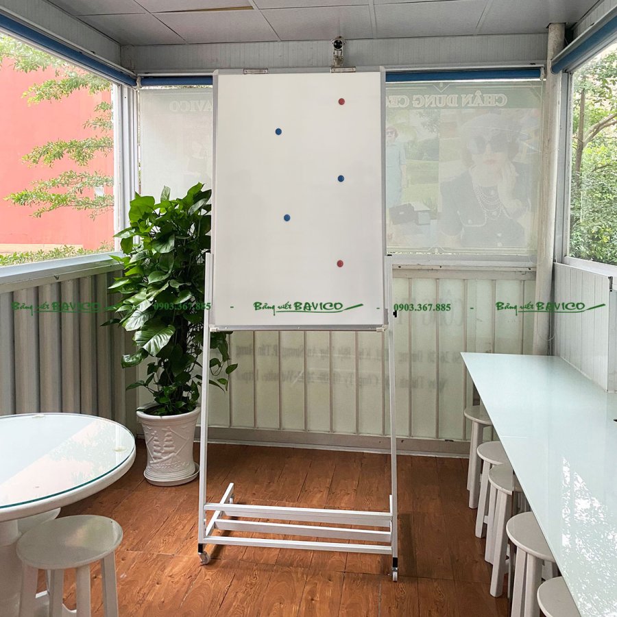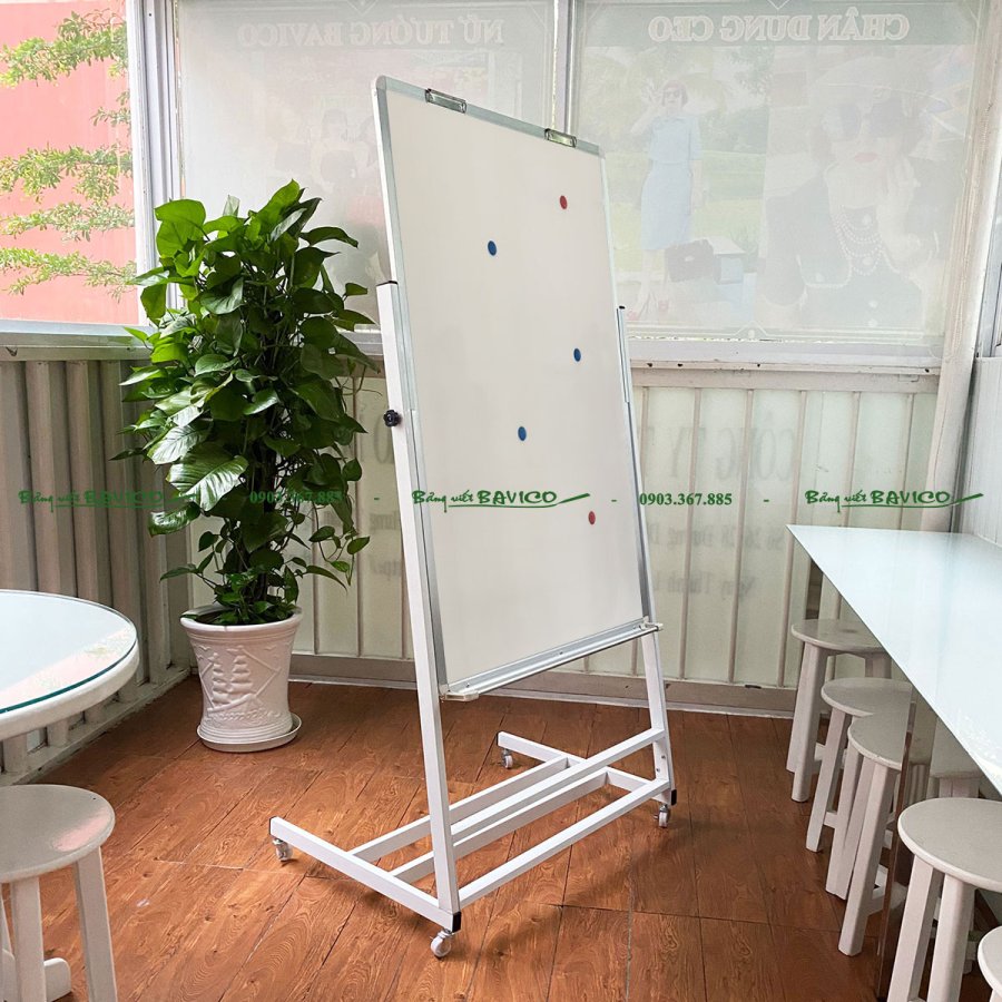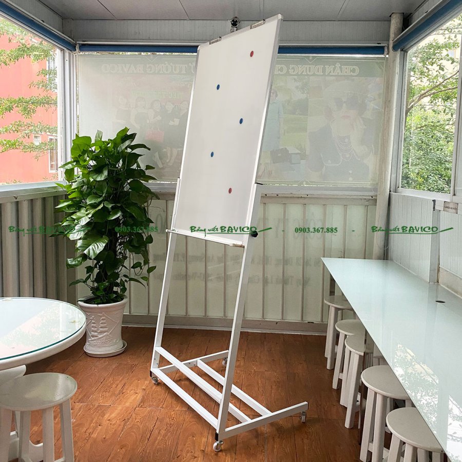 Đây là loại bảng viết 1 mặt, có từ tính, dùng được với bút lông (whiteboard marker), kết hợp cùng giá đỡ flipchart có chân đẩy tiện lợi, giúp người dùng dễ dàng trình bày nội dung trong các buổi thuyết trình, hội họp hay giảng dạy.