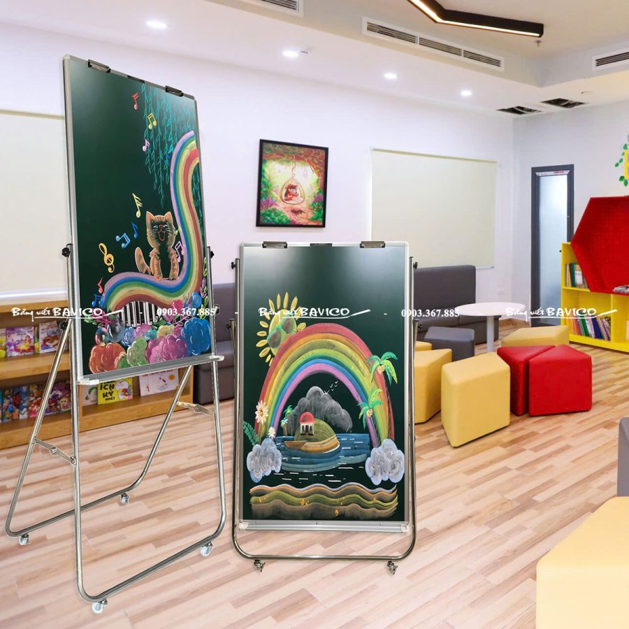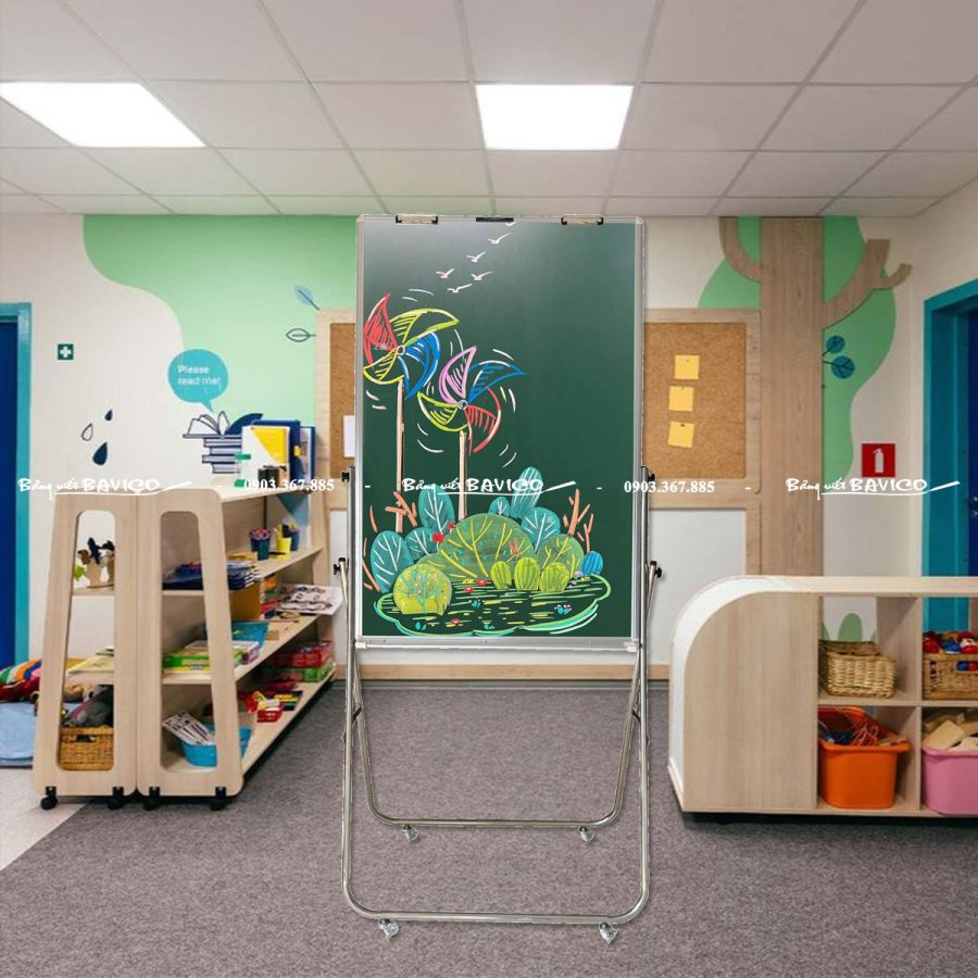 Đa năng – Tiện lợi: Dùng viết phấn, đính tài liệu bằng nam châm, hoặc treo giấy flipchart đều dễ dàng.