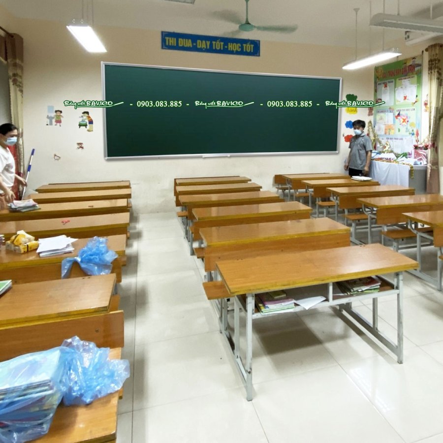 Mặt bảng từ màu xanh viết phấn được nhập khẩu trực tiếp từ Hàn Quốc. Với nét kẻ ô ly chìm 5 cm mặc định không bị phai mờ theo thời gian.