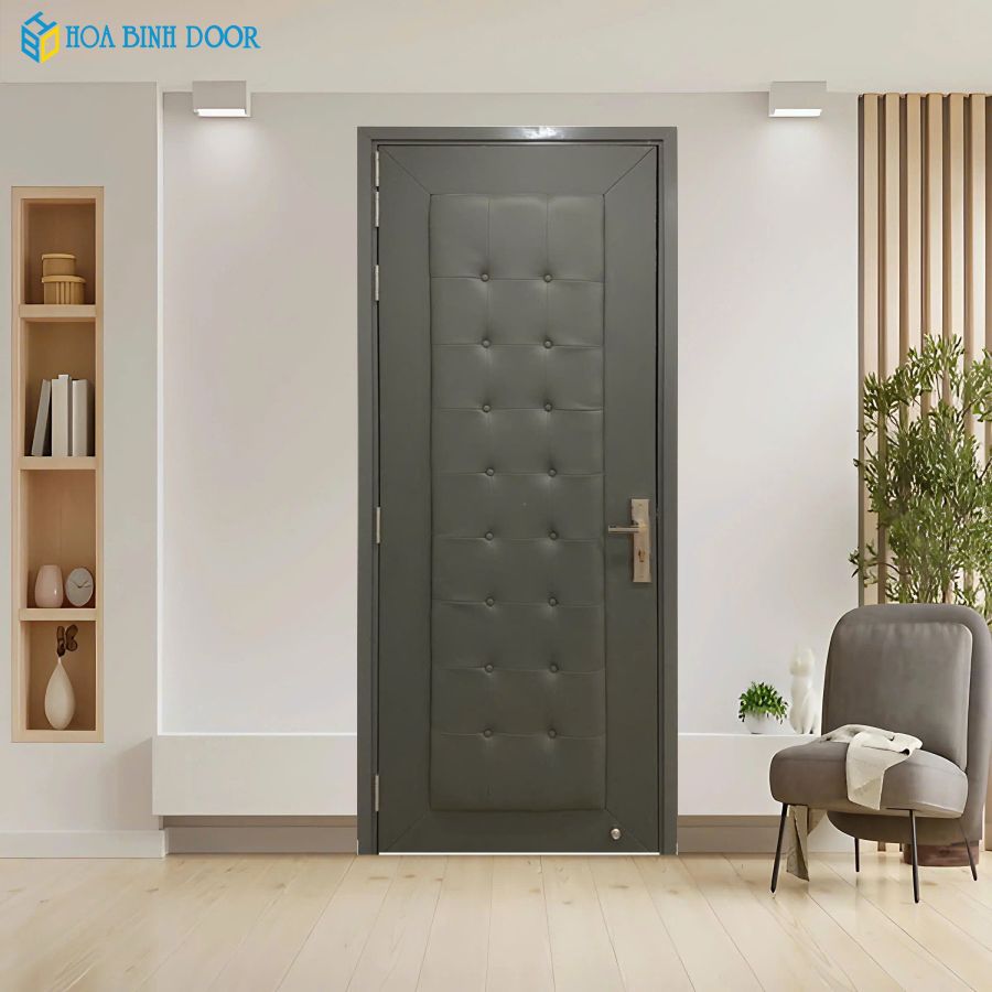 Mẫu cửa gỗ cách âm bọc simili lắp đặt tại công trình