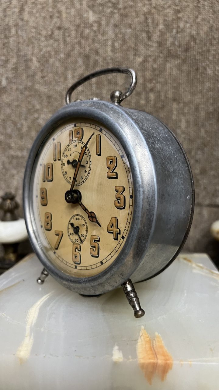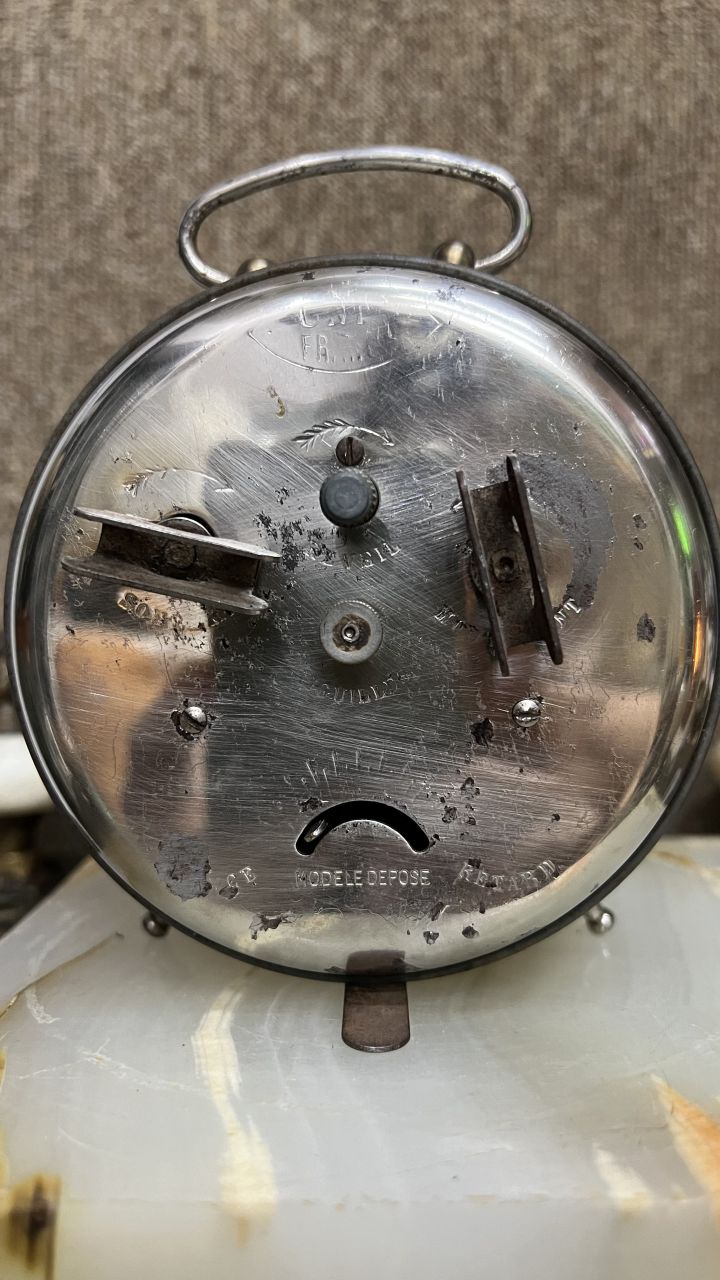 Báo thức Jaz Pháp cổ 4 kim âm rất hay sx 1930 đáng được sưu tầm đã vô dầu máy chạy tốt